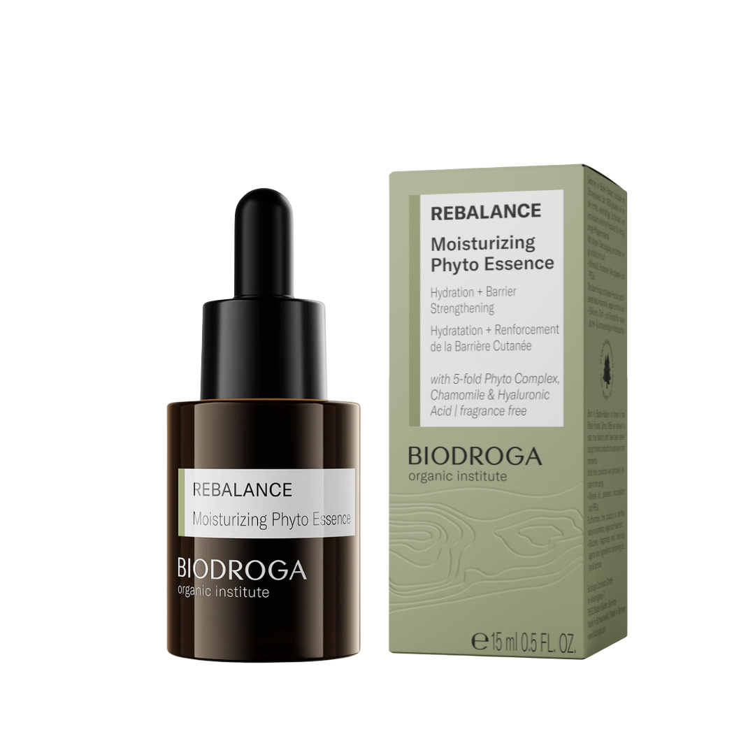 BIODROGA Organic Phyto Essence Rebalance je sertifikovana organska, veganska esencija razvijena da pruži koži dubinsku hidrataciju, umiri iritacije i ojača zaštitnu barijeru. Njena lagana, a hranljiva formula kombinuje hijaluronsku kiselinu za dugotrajnu vlažnost i elastičnost sa prebioticima koji podržavaju zdraviji mikrobiom kože i jačaju njenu otpornost na spoljne uticaje.