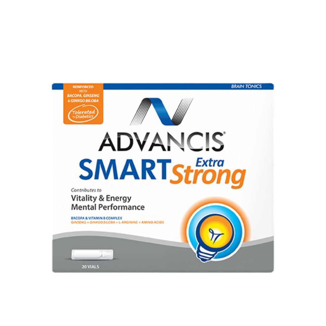 Advancis Smart Extra Strong je tonik za mozak i telo s antioksidativnim dejstvom, posebno pogodan za suočavanje sa svakodnevnim stresom. Namenjen je osobama koje se suočavaju sa visokim intelektualnim zahtevima, fizičkim ili mentalnim zamorom, problemima sa koncentracijom i memorijom, posebno tokom ispita ili intenzivnih radnih perioda