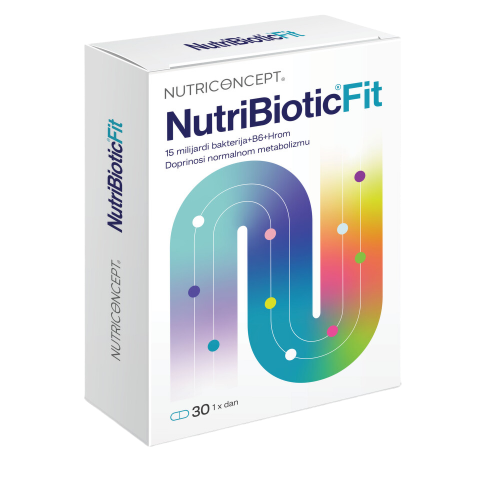 Dodatak ishrani na bazi specifičnih probiotskih bakterija 15 milijardi CFU, inulina, vitamina B6 i hrom-pikolinata. NutriBiotic Fit kapsule doprinose normalnom metabolizmu makronutrijenata, održavanju optimalnog nivoa glukoze u krvi, sprečavanju i ublažavanju gastrointestinalnih tegoba, zaštiti crevnog epitela. Bifidobacterium lactis B420 je patentirani probiotski soj sa izraženim pozitivnim efektima na metaboličke funkcije organizma. Kliničkim studijama je pokazano da njegova redovna upotreba doprinosi smanjenju telesne težine, visceralnih masti i obima struka.