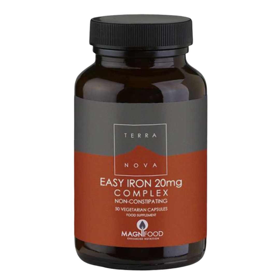 Terranova Easy Iron Complex sadrži Gvožđe(II)-bisglicinat 20mg kao visoko apsorbujući oblik gvožđa koji ne dovodi do konstipacije (zatvora) ni mučnine. Plod divlje ruže (šipak)-sadrži vitamin C koji značajno povećava iskorišćenost gvožđa. Herba ječma pored sadržaja gvožđa, ječam trava je odličan izvor hlorofila i folne kiseline ( koja je potrebna za formiranje hemoglobina). Acai plod (ORGANIC) /Euterpe oleracea/ 25mg – akai bobice obezbeđuju nadoknadu oksidacionog efekta gvožđa na vitamin E. Takođe sadrže i vitamine B1, B2, B3, E i A, pa predstavljaju i značajan izvor vitamina. Osim vitamina, akai sadrži i minerale: magnezijum, kalcijum, bakar, cink, kalijum.